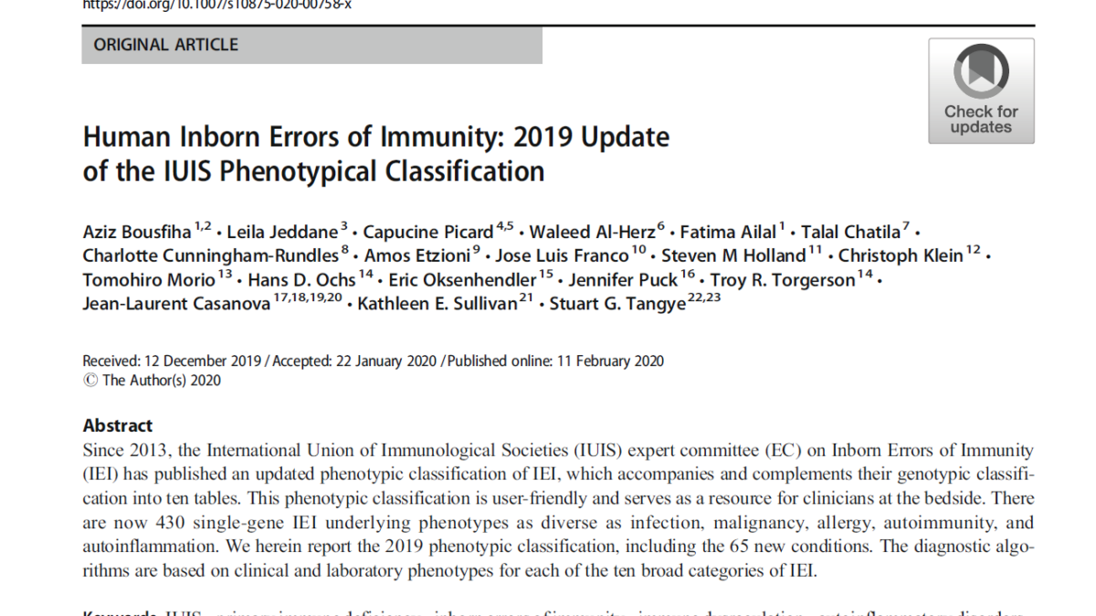 Classificação Fenotípica IUIS 2024: Atualizações em Erros Inatos da Imunidade